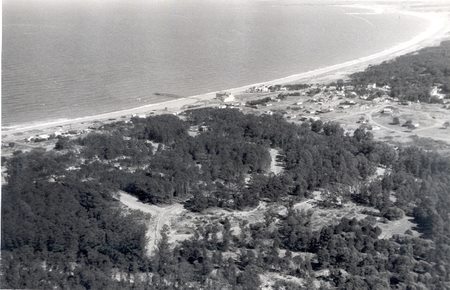 La lagartija verde esmeralda con listas grises se asolea con los ojos cerrados en el médano de arena blanca y fina. Pocos ruidos se sienten en la tarde de calor agobiante y todos provienen desde la altura de los pinos: el grave arrullo monótono de las palomas y las piñas que se abren con chasquidos de madera seca. Más tarde, sobre las cinco o seis, la brisa soplará desde el mar y los pinos nuevamente serán el instrumento para llenar el aire con el rumor del viento entre las pinochas.
